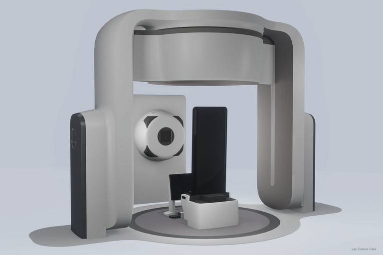 Bei der innovativen Lösung Marie™ von Leo Cancer Care wird der aufrecht stehende Patient rotiert, nicht wie in herkömmlichen Lösungen die Maschine – das resultiert nicht nur in einer höheren Genauigkeit der Behandlung, sondern auch in reduzierten Kosten. Das Unternehmen fand in enger Zusammenarbeit mit R.A. Rodriguez (U.K.) Limited eine Lösung, die eine Patientenpositionierung mit einer Genauigkeit von weniger als 1 mm ermöglicht. Dank einer großen Kugeldrehverbindung, die bei Rodriguez in Eschweiler technisch ausgelegt und hergestellt wurde, lässt sich der Stuhl nicht nur exakt drehen, sondern das System kann den Patienten auch heben und senken sowie ihn von links nach rechts und von vorne nach hinten neigen. Dies erleichtert die Abbildung und Behandlung aller für die Partikeltherapie spezifischen anatomischen Stellen in aufrechter Position.