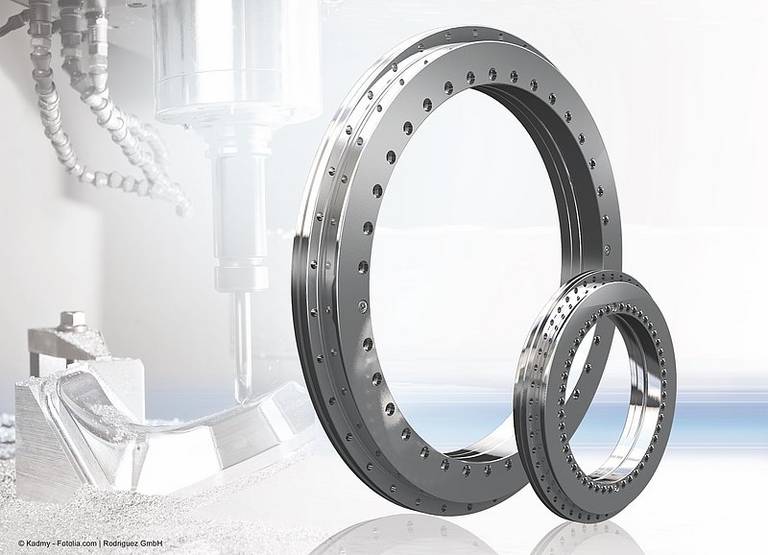 Das kippsteife Bewegungsverhalten der RTB-Lager wird durch die im Axialkäfig geführten Nadelrollen und die große Anzahl an Wälzkörpern mit linearem Kontakt erreicht. Darüber hinaus überzeugen diese Wälzlager mit einer äußerst präzisen mechanischen Verarbeitung, die der Präzisionsklasse P4 entspricht. Die bidirektionalen Axial-Radial-Lager sind mit dem integrierten Präzisions-Winkelmesssystem AMOSIN ausgerüstet: Dieses induktive Abtastsystem ist genauso präzise wie optoelektronische Systeme und darüber hinaus äußerst beständig gegenüber ungünstigen Umweltbedingungen sowie mechanischen Belastungen wie Stößen und Vibrationen. Die RTB-Lager sind entweder mit einem Inkremental- oder mit einem Absolutdrehgeber verfügbar.