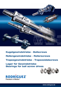 Rodriguez rollerscrews are only used for transferring axial forces. They consist of a ground spindle and the threaded nut which is equipped with rollers. The special geometry of the thread and the rollers characterize the rollerscrews. The use of rollers with grooves on their outside diameter and the hereby resulting contact areas as well as the number of contact points permit a high axial load capacity.